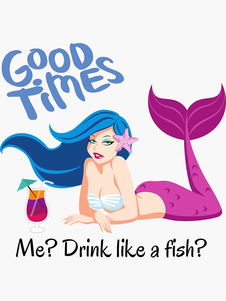 Funny Mermaid Drink LIke A Fish Quote” Sticker for Sale by